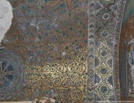 D’importantes consolidations de la voûte ont permis de conforter l’adhésion entre la mosaïque et son support. Les retraits de concrétions et de dépôts de carbone en surface des tesselles ont restitué sa lisibilité au décor. La remise en place de tesselles originales dans des zones précises a contribué à améliorer l’unité de la composition, sans procéder à des interventions excessives qui dénatureraient cette œuvre si riche par elle-même. Ces travaux doivent encore être poursuivis.